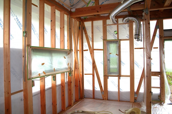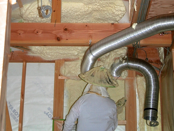 ダクトや配管等の隙間が出やすい部分にもしっかり充填することで気密性を確保します。