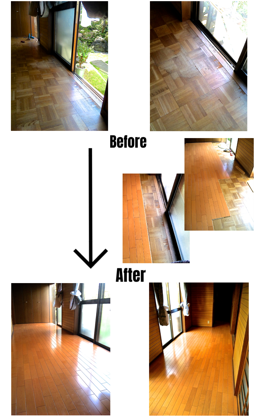 フローリングの色が暗めで、部屋が暗く感じてしまう、ということと、痛みが激しかったので、張替えをしました。