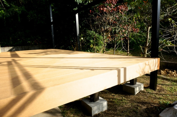 ウッドデッキは、腐食やシロアリに強く、表面温度が熱くなりにくいLIXILの樹ら楽ステージを採用しました。