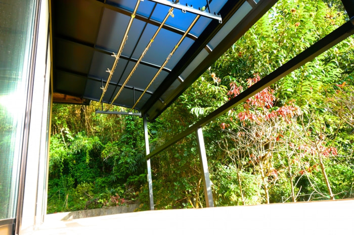 屋根も同じくLIXILのライザーテラスⅡを採用。熱線吸収ポリカーボネートが熱線(近赤外線)と紫外線をカットしてくれます。